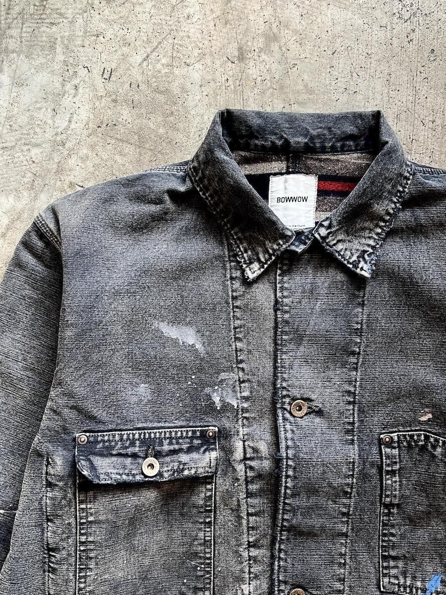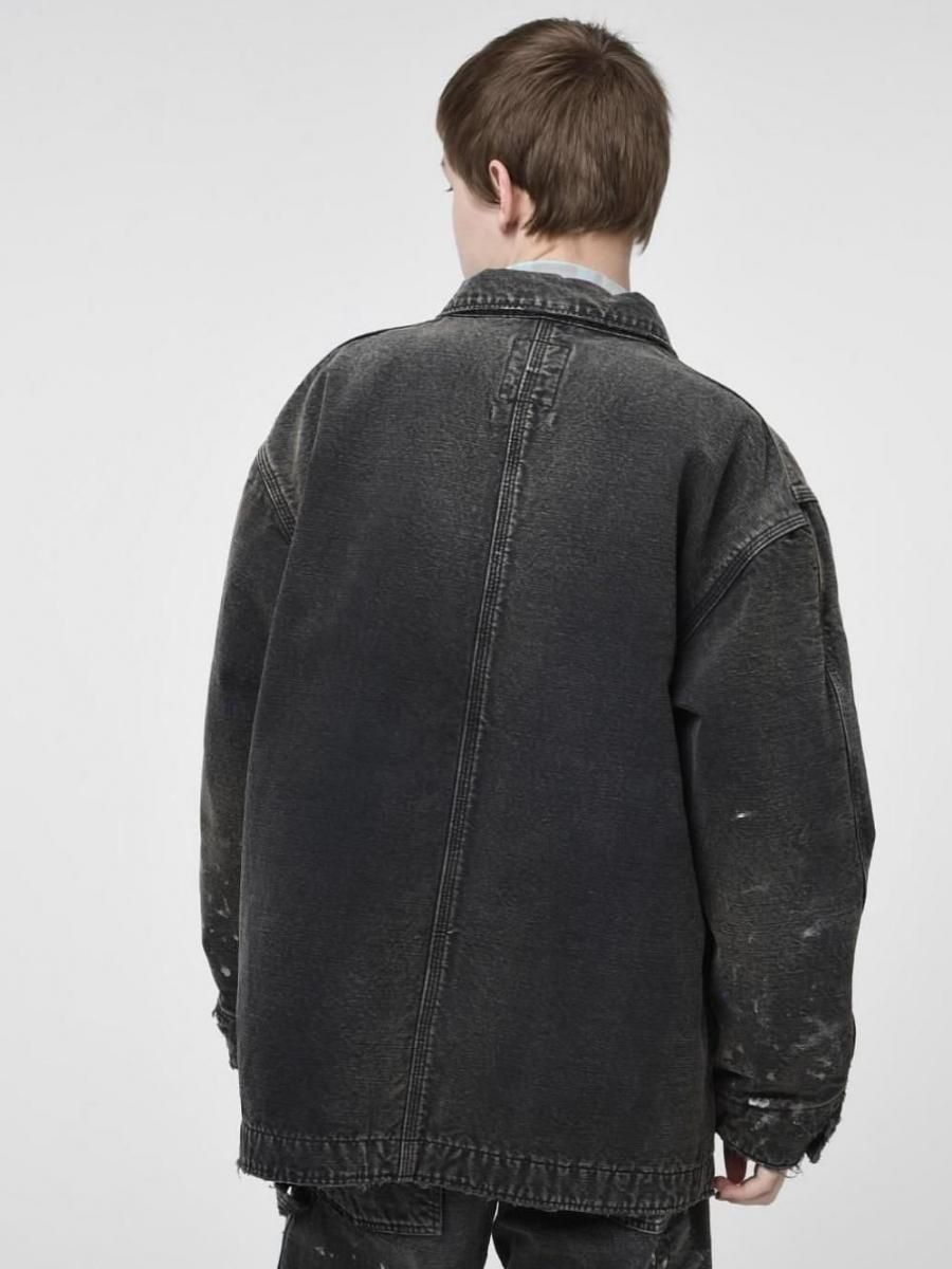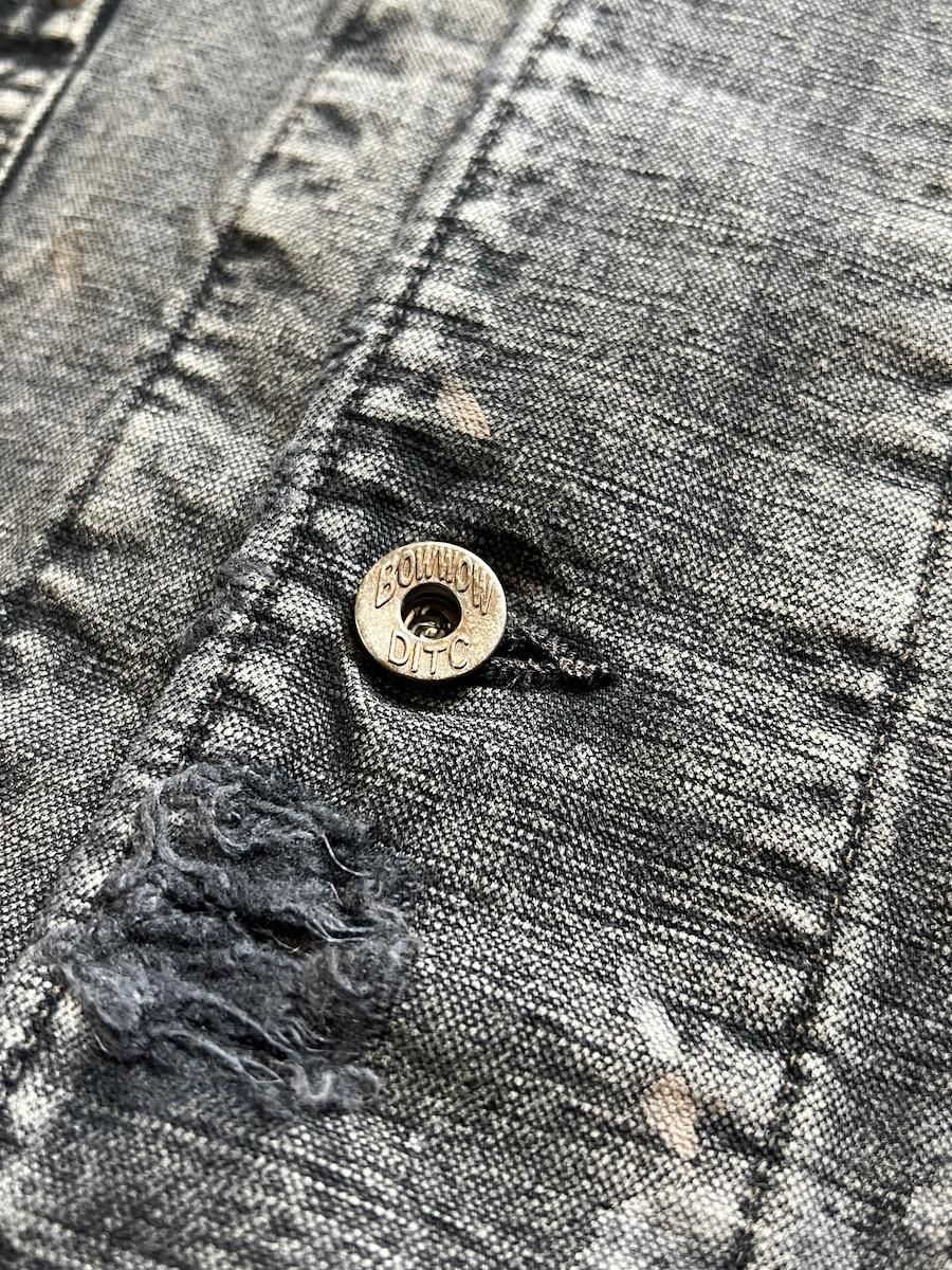 ペンキ跡や擦れ、味わい深い破れを加工で再現した。